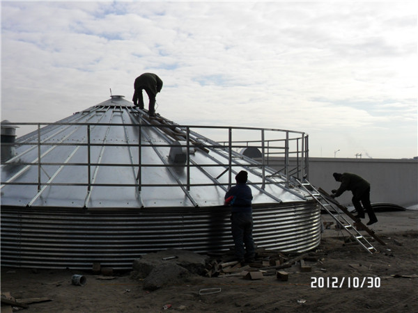 1、通風系統,倉頂安裝自然通風窗、引風機,錐底安裝鼓風機,引流空氣到倉內循環,保護糧食不受潮,極大的保證了倉內糧食的質量。